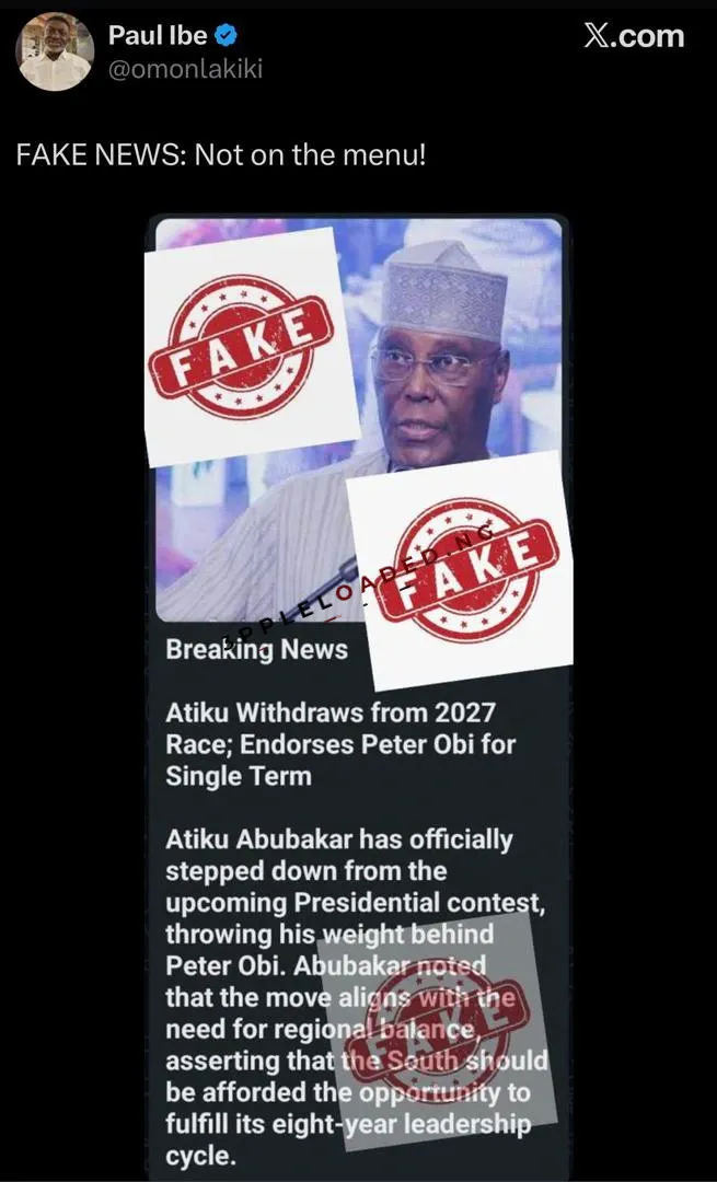 The denial has triggered fresh reactions online, with supporters of Atiku and Peter Obi debating the 2027 permutations and possible political alliances.