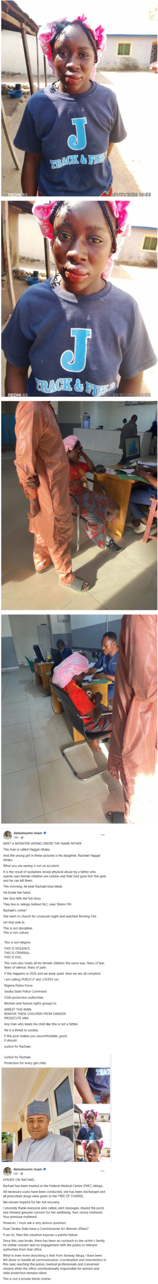 Taraba State Police Command has reportedly arrested one Mr. Haggai Ishaku following allegations that he assaulted his daughter, Rachael Haggai Ishaku.