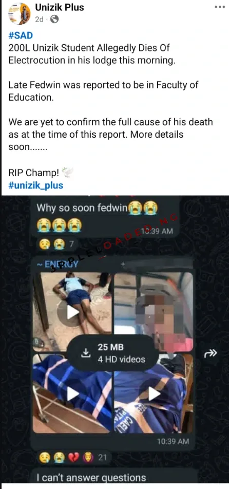 Despite efforts to rush him to the hospital, updates posted later by fellow UNIZIK students on Facebook confirmed that Fedwin did not survive.