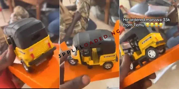 The video captures a man showing off the diminutive keke Napep while mocking the man who purchased the item online.