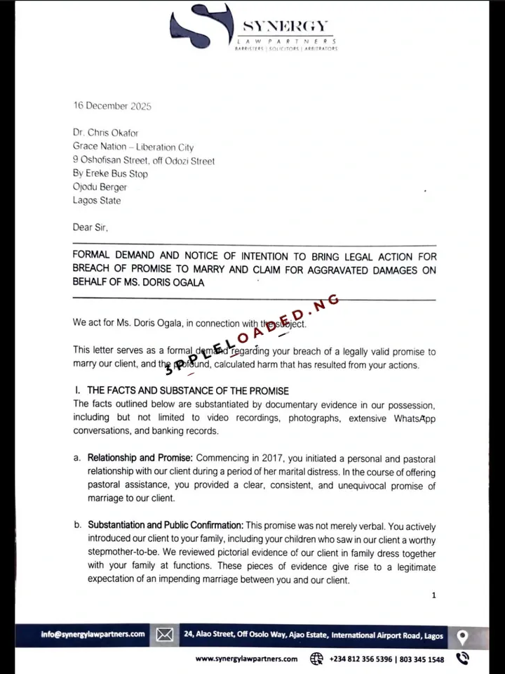 Doris has repeatedly claimed that she and Pastor Okafor were in a serious, long-term relationship and that she was led to believe marriage was imminent.