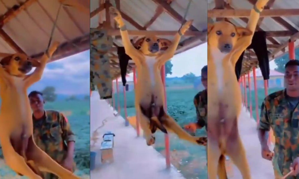 A disturbing video has gone viral on social media showing Nigerian soldiers hanging a dog and mercilessly punishing it for eating their meat. In the video,...