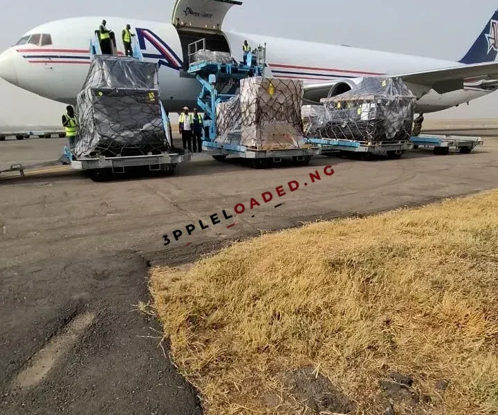A white cargo aircraft touched down at Nnamdi Azikiwe International Airport this morning, unloading several large wooden crates believed to contain urgently needed military equipment donated...