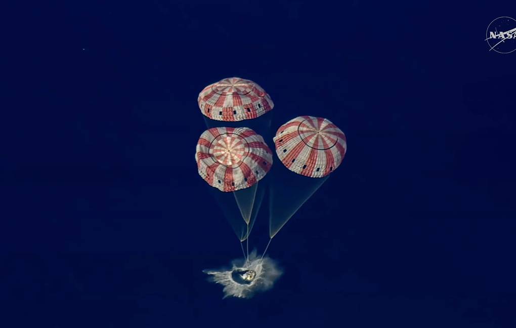 The crew successfully completed a parachute-assisted splashdown in the Pacific Ocean off the coast of San Diego (California) at 8:07 p.m. EDT on April 10 (3:07 a.m. Moscow time, or 12:07 a.m. GMT on April 11).