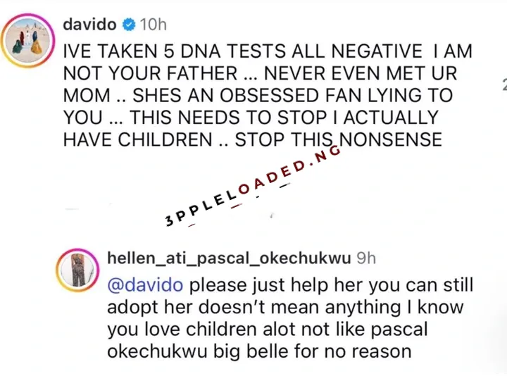 Socialite, Cubana Chiefpriest’s alleged baby mama, Hellen Ati, has appealed to singer Davido to adopt Anu, the 13-year-old girl demanding DNA test from him.