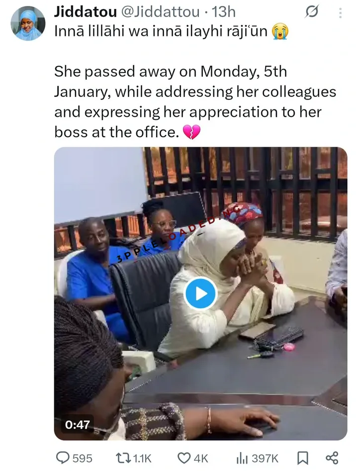 BREAKING NEWS: Nigerian Woman Slumps And Di£s Suddenly While Addressing Her Boss And Colleagues At Work (Video)