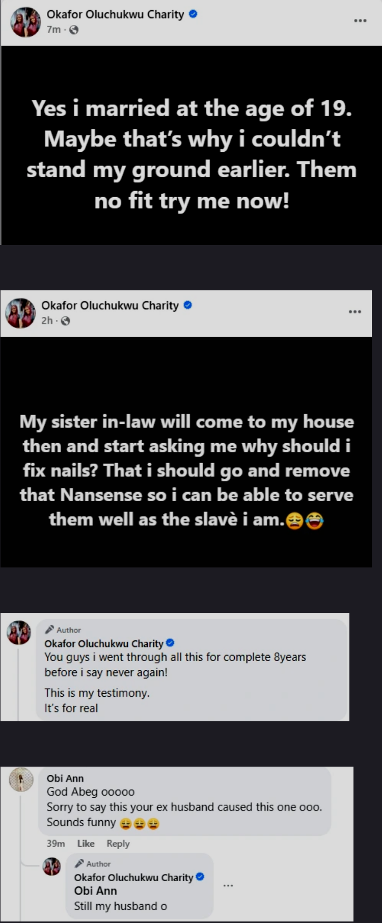 A Nigerian woman, Okafor Oluchukwu Charity, has recalled memories from the early years of her marriage when her husband’s sister allegedly used to flog her.....TAP TO CONTINUE READING