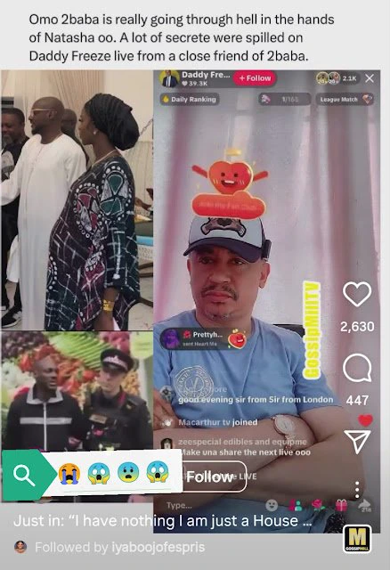 The trending UK altercation involving Nigerian music icon Tuface Idibia and his new wife, Natasha, has opened the door to deeper allegations, as one of Tuface’s close acquaintances took to Daddy Freeze’s live session to narrate what he described as the emotional and professional challenges the singer has allegedly been facing behind closed doors.