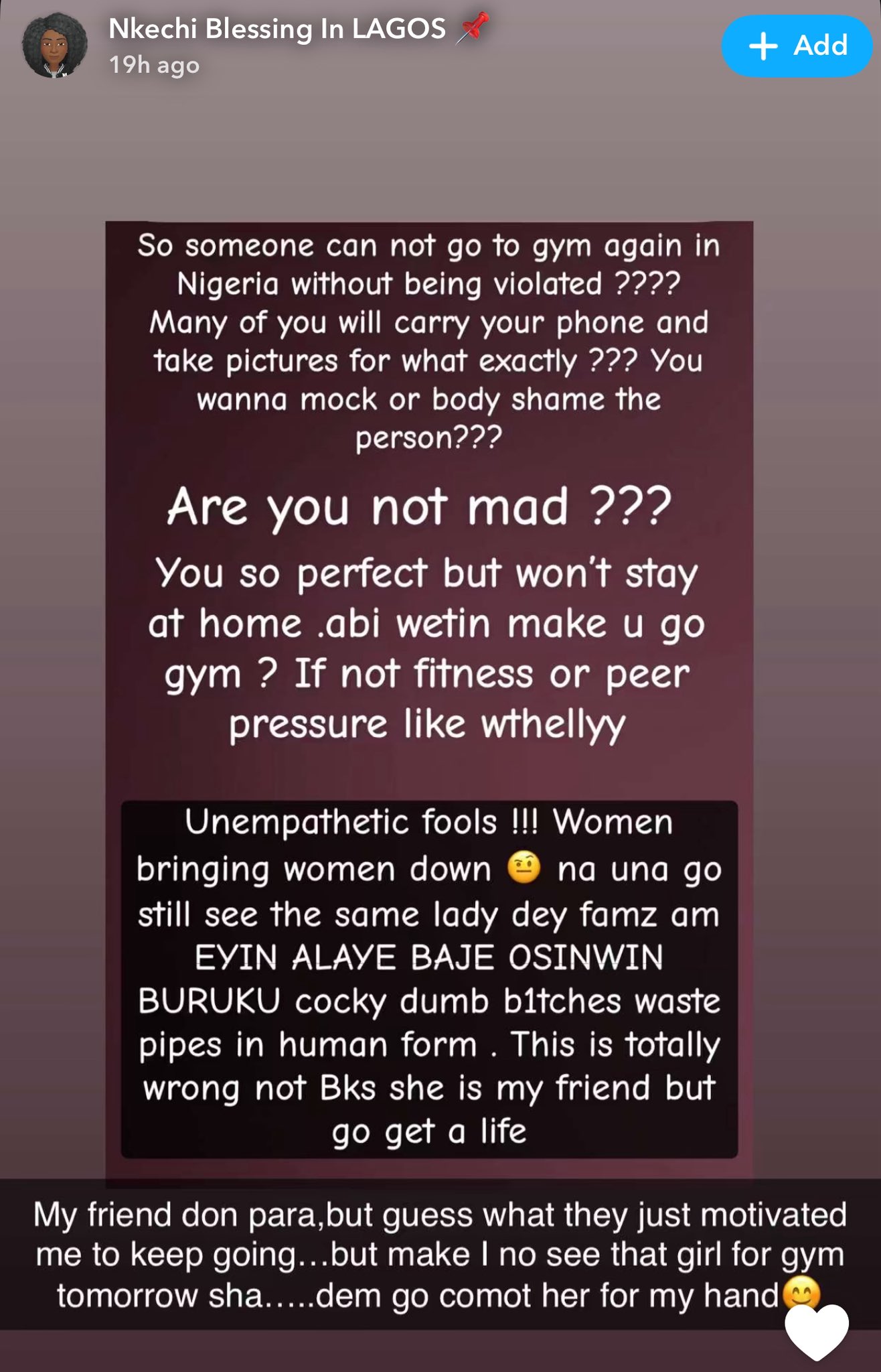 “So someone cannot go to the gym again in Nigeria without being violated? Many of you will carry your phone and take pictures for what exactly? You wanna mock or body shame the person? Are you not mad?” she wrote..Click Link For Full Details!