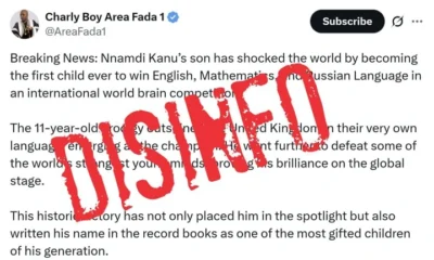 Charly Boy, the ace Nigerian singer, has claimed the son of Nnamdi Kanu, leader of the proscribed Indigenous People of Biafra (IPOB), won an international world...