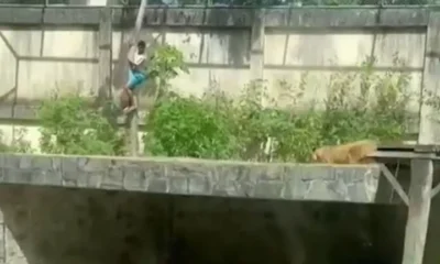 The unidentified man was believed to be suffering from mental health problems when he scaled the wall to the Brazilian zoo and hopped into the lion’s...