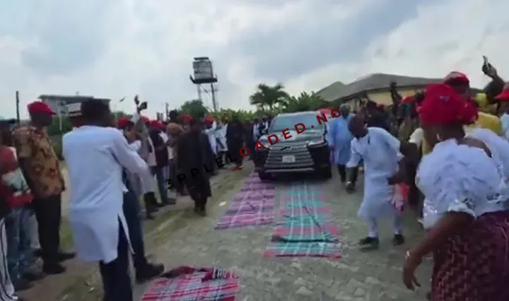 The video showed women spraying their wrappers on the ground for Wike’s vehicle to pass through as it entered the venue.